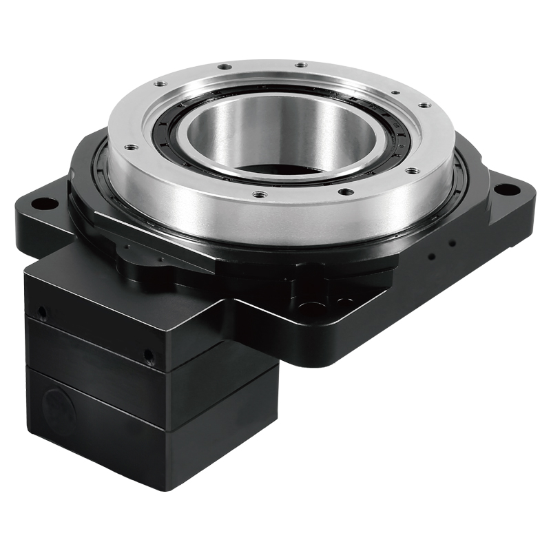 中空旋转平台一种全新的旋转负载装置,它集高传动效率,高精度,高刚性,高性价比于一身。综合了伺服马达,凸轮分割器及直驱马达的优势。使用高精度齿轮结构和径向轴承,提高了扭矩的刚性,承载更稳重,搭配伺服电机或者步进电机可做任意角度分割,即可满足分割器无法实现的位数控制,定位精度有可媲美直驱电机,可在短时间内实现惯性负载的定位。